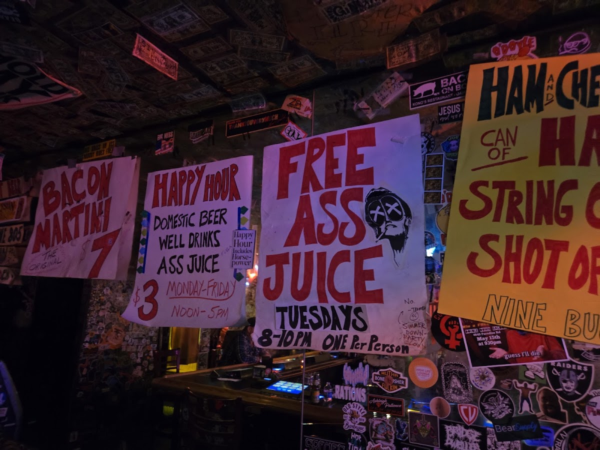 These drinks are perfect for winding down after a long day, enjoying live music, or gathering with friends in a space where casual comfort and a touch of irreverence set the tone. The menu fits seamlessly with the venue’s dark, grungy ambiance—great for those who appreciate a chill environment away from the usual Vegas bustle.